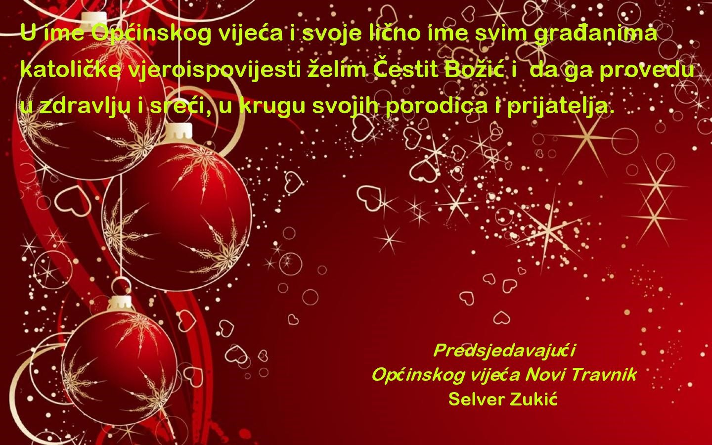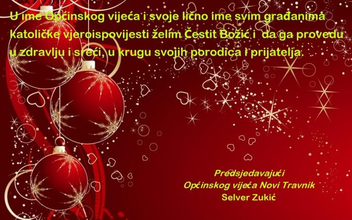 U ime Općinskog vijeća i u svoje lično ime svim građanima katoličke vjeroispovijesti želim čestit Božić i da ga provedu u zdravlji i sreći, u krugu svojijh porodica i prijatelja, stoji u čestitki Zukić Selvera, predsjedavajućeg OV Novi Travnik