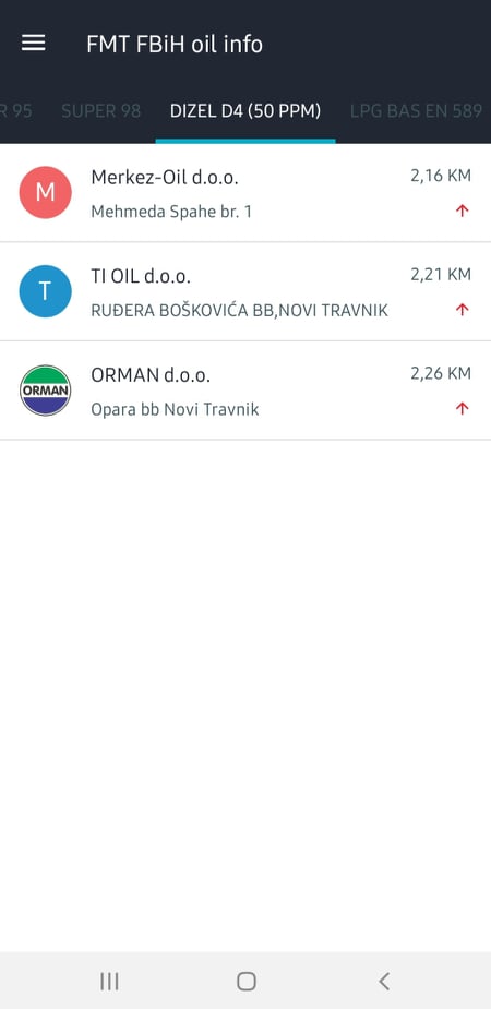 Dizel D5 po cijeni od 2,16KM možete natočiti na TIOIL-u u Stojkovićima, TDIZEL-u u Trenici, GUDELJ na Ratanjskoj i na pumpi Merkez-OIL. Najskuplja cijena ovog goriva je na pumpi ORMAN u Opari, i to 2,36KM.