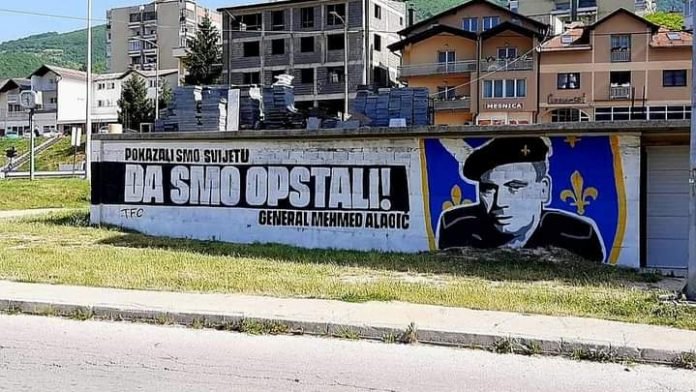 U Travniku, na Kalibunaru, jutros je osvanuo mural naslikan u čast legendarnog generala 7. korpusa Armije RBiH, Mehmedu Alagiću.