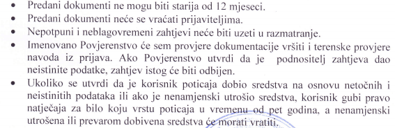(maksimalni iznos poticaja po jednom korisniku 1.000 KM) - Predvidena sredstva 20.000 KM.