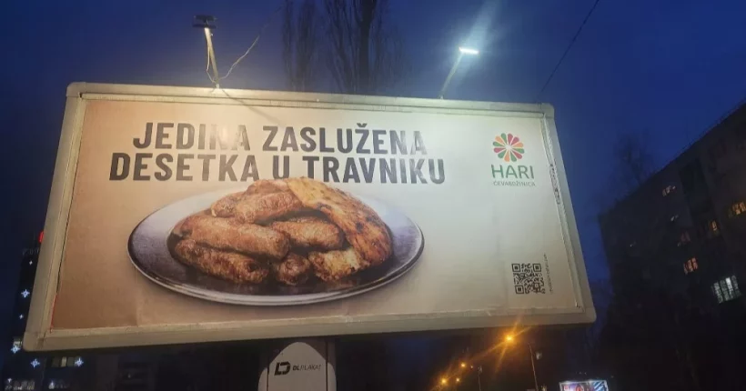 Naime, travnička ćevabdžinica “Hari” je odlučila da ovaj put svoj brend reklamira sloganom “Jedina zaslužena desetka u Travniku”.