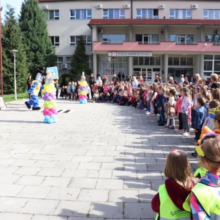 U zabavnom programu novotravničke prvačiće, kojima su se pridružila i djeca iz vrtića, uveseljavale su tri maskote Sammy Stretch, Talking Angela i Talking Tom.