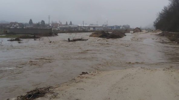 Zbog velike količine oborina sinoć se u izlila rijeka Lašva u mjestu Nova Bila, na dijelu gdje se ulijeva rijeka Grlonica.