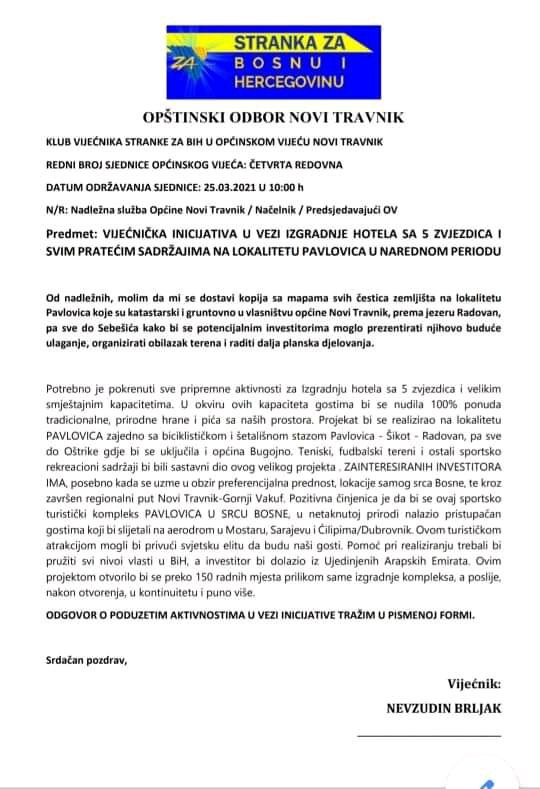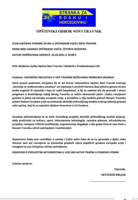 Vijećnik u novotravničkom Općinskom vijeću Nevzudin Brljak zvanično je prešao u stranku za Bosnu i Hercegovinu.