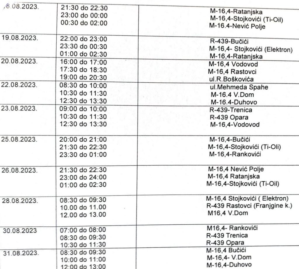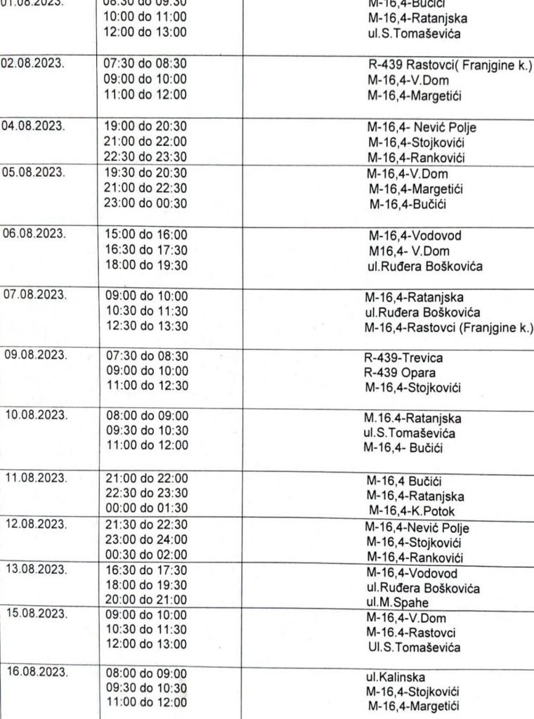 U prilogu kompletan spisak planiranih dnevnih i noćnih radarskih kontrola u mjesecu augustu za područje općine Novi Travnik.