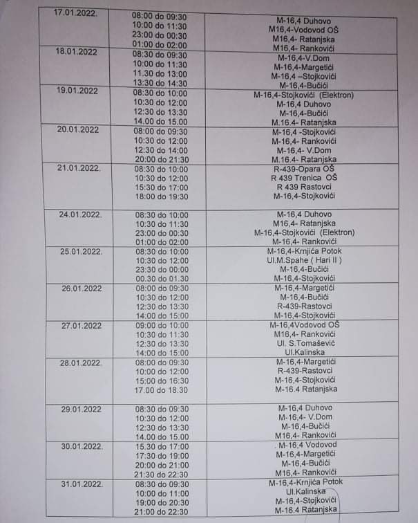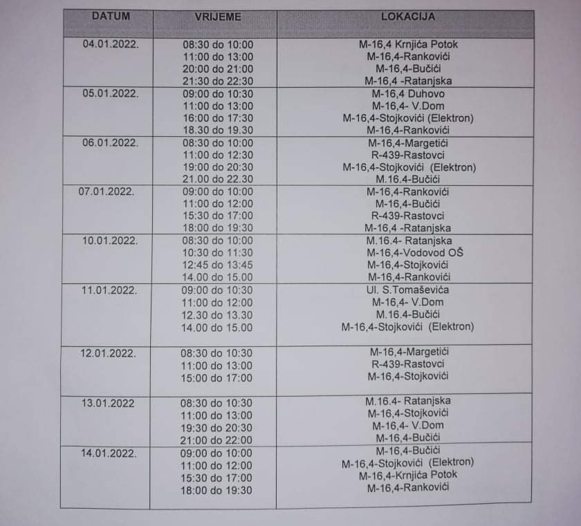 Novi Travnik: Kompletan spisak radara za januar 2022. godine