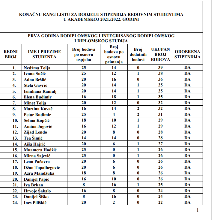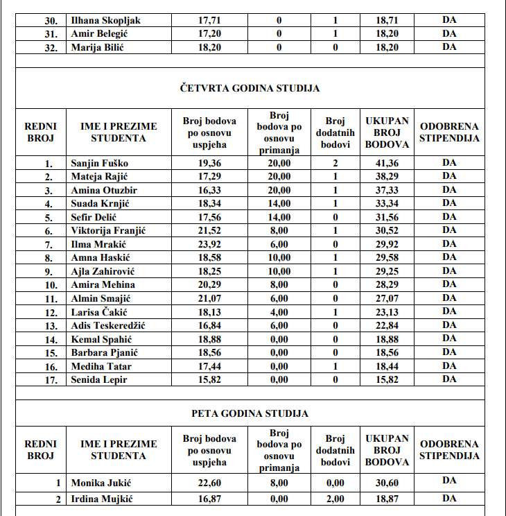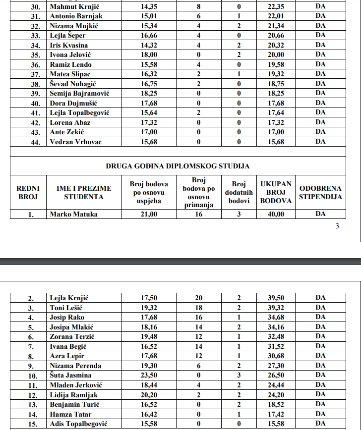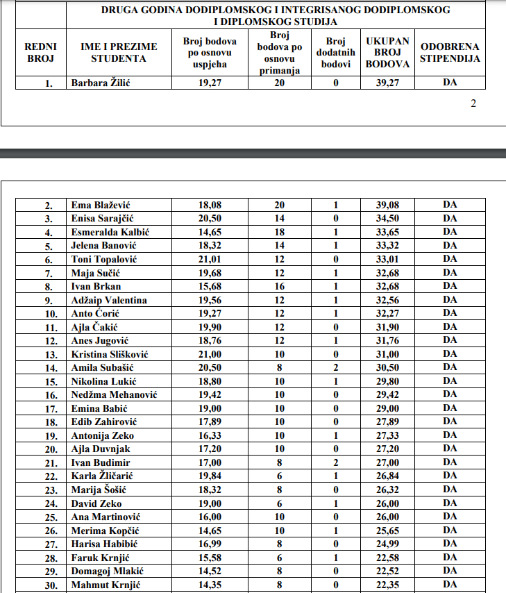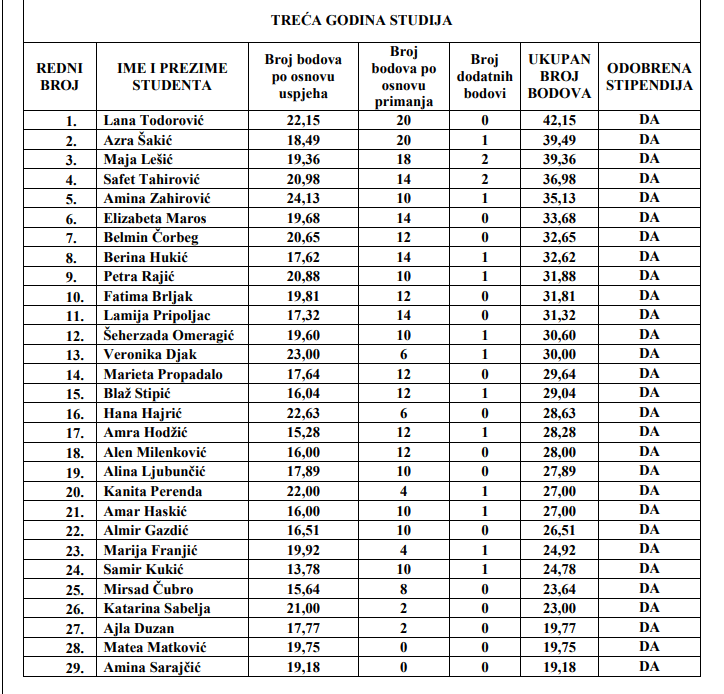 Pogledajte konačnu rang listu redovnih studenata koji će dobiti stipendiju Općine Novi Travnik: