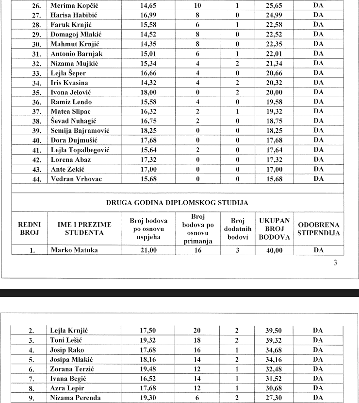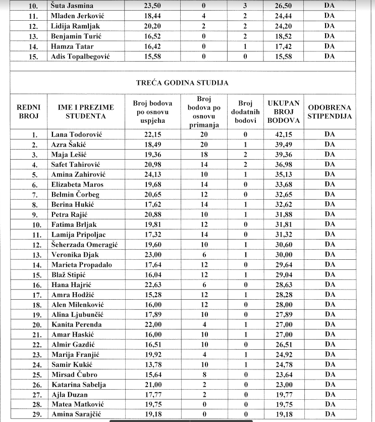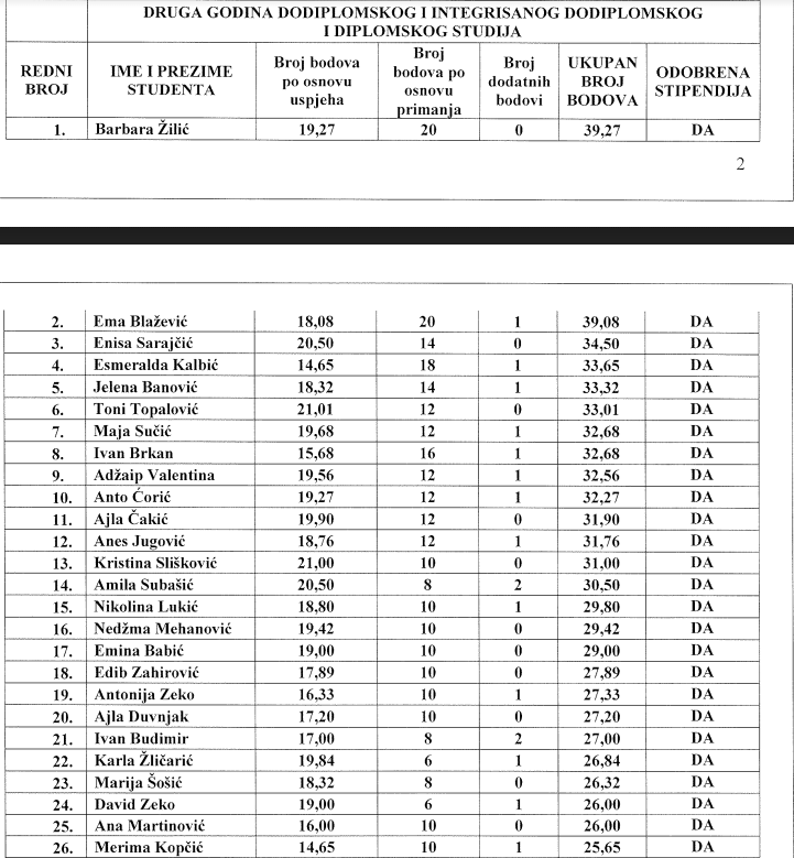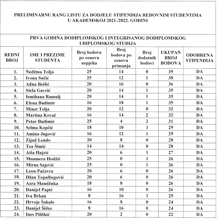 Povjerenstvo za dodjelu stipendija izvršilo je detaljan pregled 176 pristiglih prijava i utvrdilo da četiri prijave ne ispunjavaju zadane kriterije dok se jedna studentica koja se našla na listi za dodjelu stipendije opredijelila za povlačenje prijave, iz osobnih razloga. U vrijeme kada je utvrđena preliminarna lista 150 studenata za dodjelu stipendije, načelnik Općine Novi Travnik definirao je Prijedlog Proračuna za 2022. godine i odlučio povećati proračunsku stavku za dodjelu stipendija, čime je 21 studentu/studentici koji su ispunjavali kriterije a nalazili su se ispod broja 150 omogućio dodjelu stipendije.