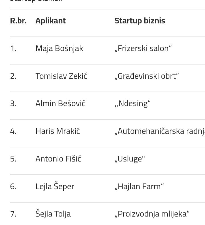 Iz Proračuna Općine financirati će se slijedeći startup biznisi za po 2.857,00KM