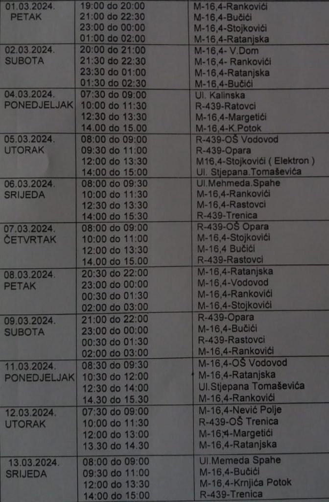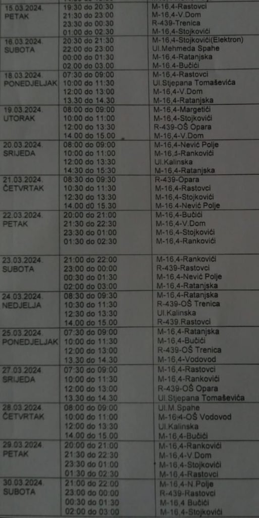 Kompletan raspored dnevnih i noćnih radarskih kontrola za mjesec mart, za područje općine Novi Travnik: