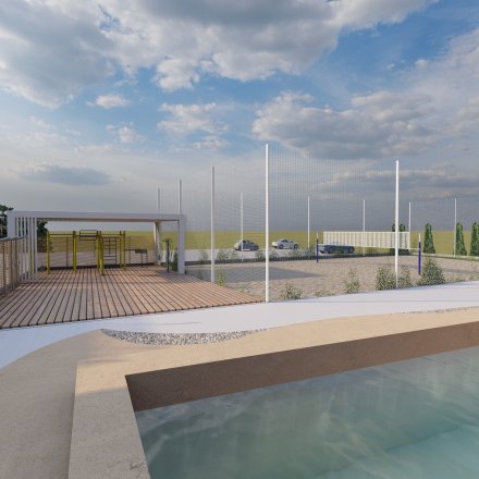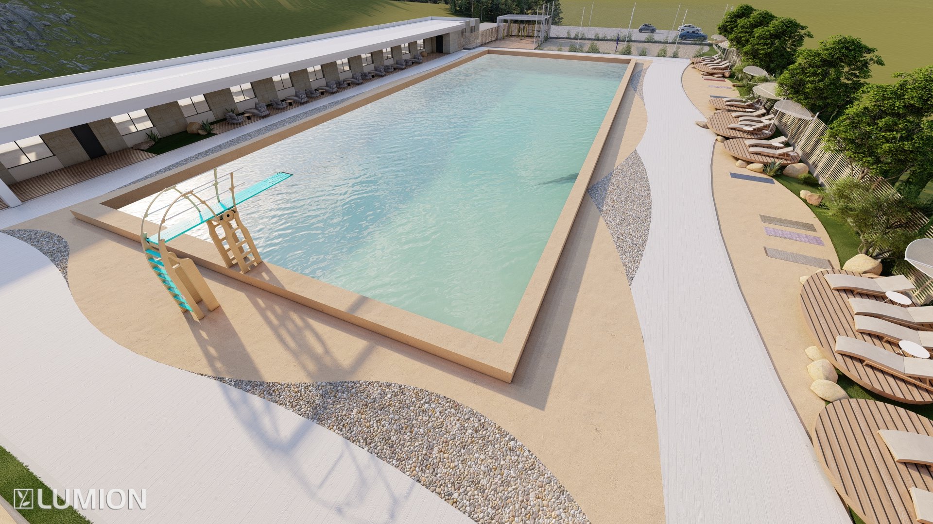 Građanima općine Novi Travnik predstavljamo Idejno rješenje uređenja novotravničkog gradskog bazena sa pratećim sadržajima kao što su dječji bazen, svlačionice, mjesta za odmor, kuglana, tuš,teren za odbojku na pijesku, ulazni punkt i drugo.