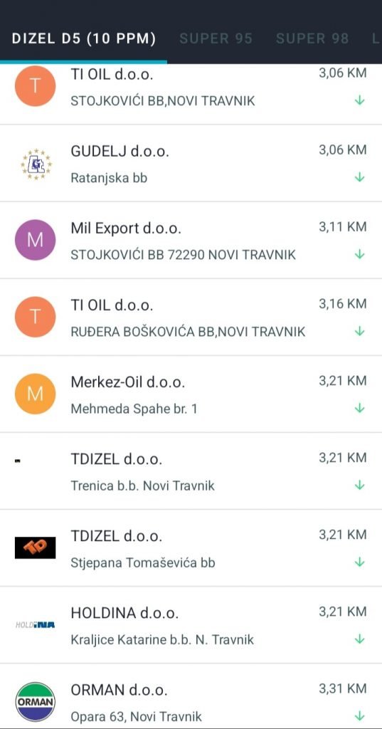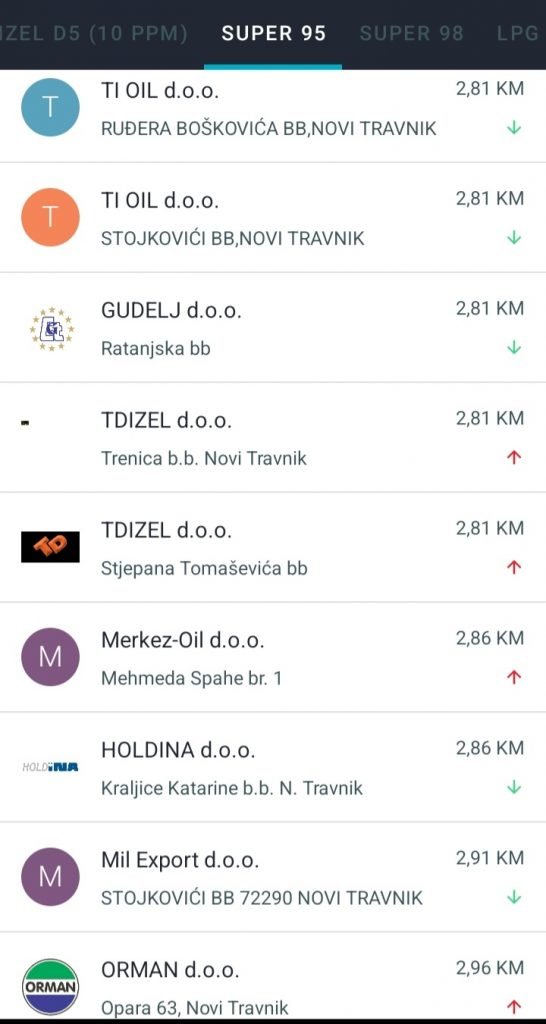 U prilogu pogledajte cijene goriva na svim benzinskim pumpama u našem gradu.
