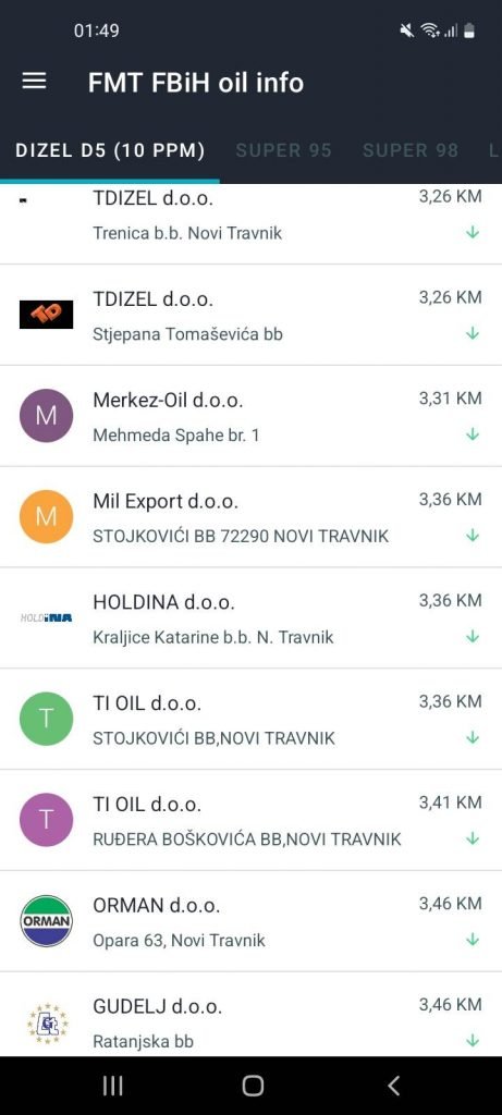 Dizel je i dalje dosta skuplji, a cijene na pumpama u Novom Travniku kreću se od 3,26KM do 3,46KM.