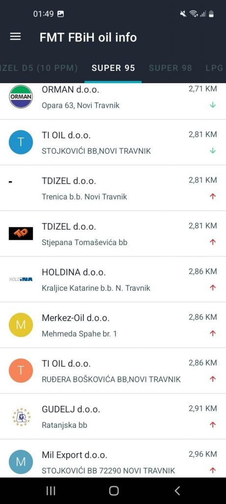 Najniža cijena litra benzina u našem gradu iznosi 2,71KM, dok je najskuplja 2,91KM.