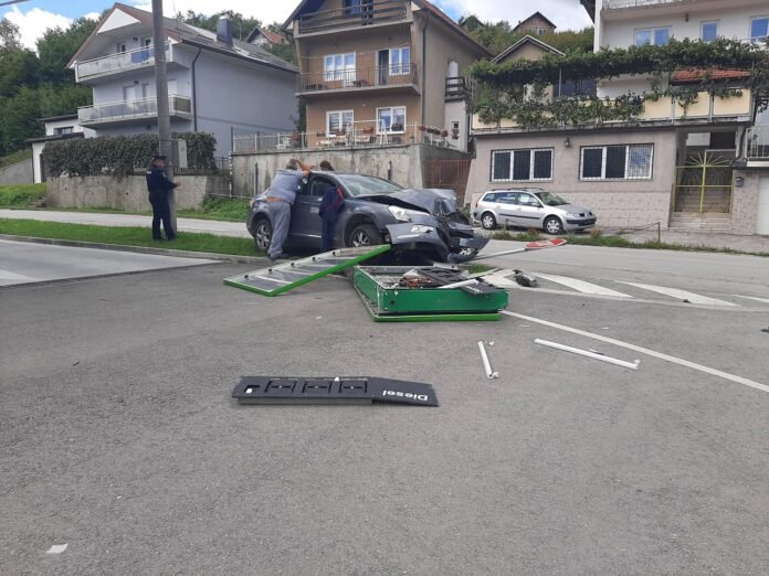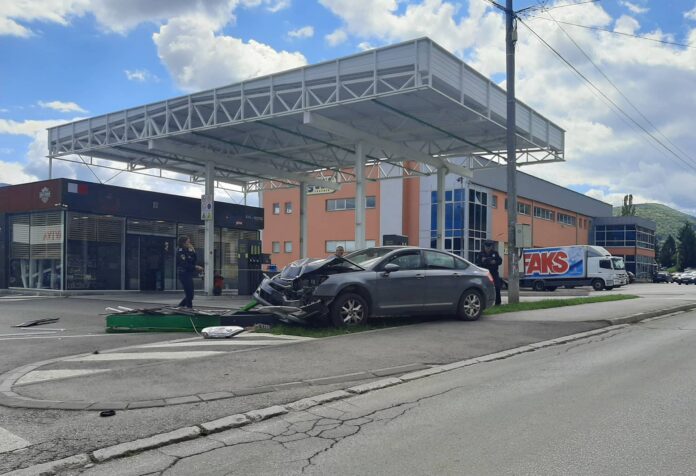 Vozač je automobilom udario u reklamni stup benzinske pumpe, a neslužbeno saznajemo da je vozio pod utjecajem alkohola.