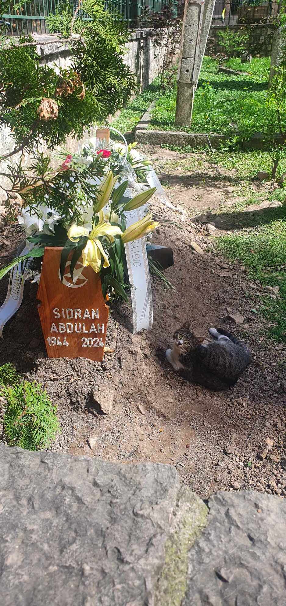 Sidranov mezar danas je posjetio i bh. glumac Armin Omerović te je ponovno zatekao istu mačku kako leži uz gomilu cvijeća.