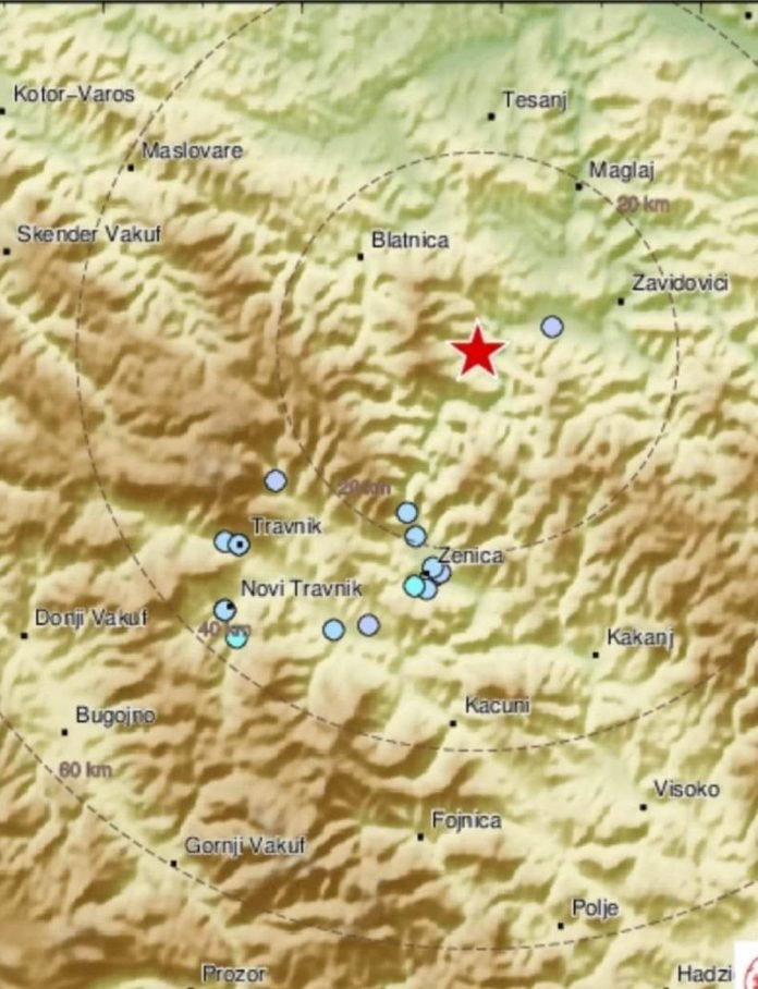 Prema podacima koje je objavio Evropski mediteranski seizmološki centar, zemljotres je zabilježen 23 kilometra sjeverno od Zenice, jutros iza 5 h.