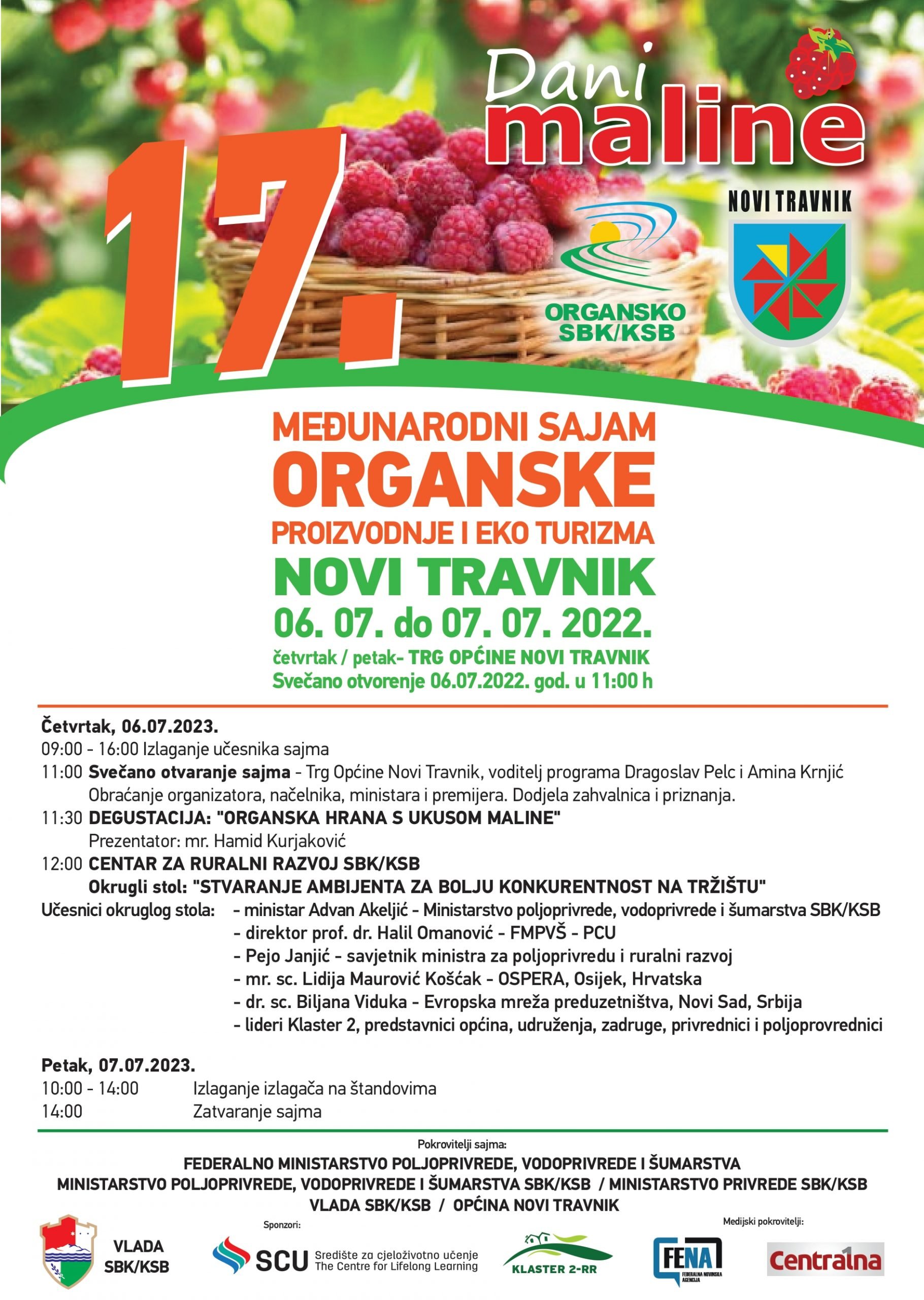 Općina Novi Travnik i ORGANSKO SBK/KSB pozivaju Vas da se pridružite svečanosti otvaranja 17. Međunarodnog sajma organske proizvodnje i eko turizma “DANI MALINE” 2023. koji se organizira u Novom Travniku.