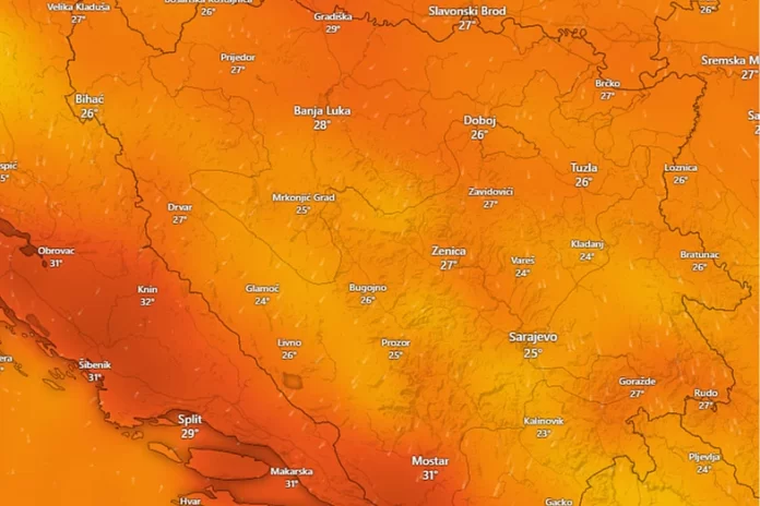 Kako je saopćeno iz Federalnog hidrometeorološkog zavoda, najviše dnevne temperatura zraka bit će između 35 i 40 stepeni.