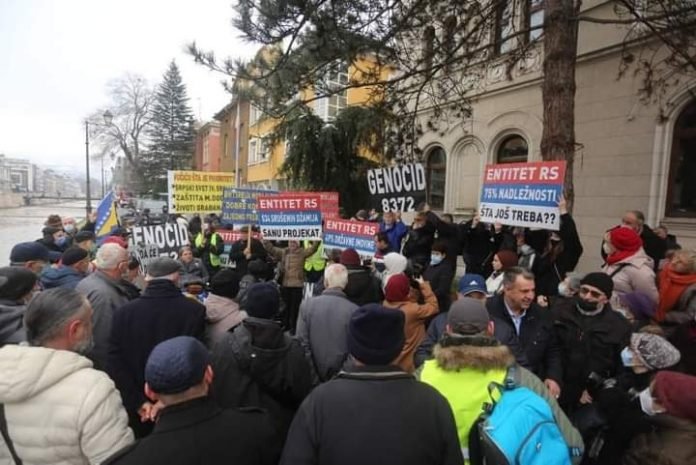 Ispred Ambasade Republike Srbije u Sarajevu održani su mirni protesti pod nazivom “Buđenje građana”, a organizatori su poručili da žele upozoriti na, kako su kazali, političku agresiju koja dolazi iz Srbije.
