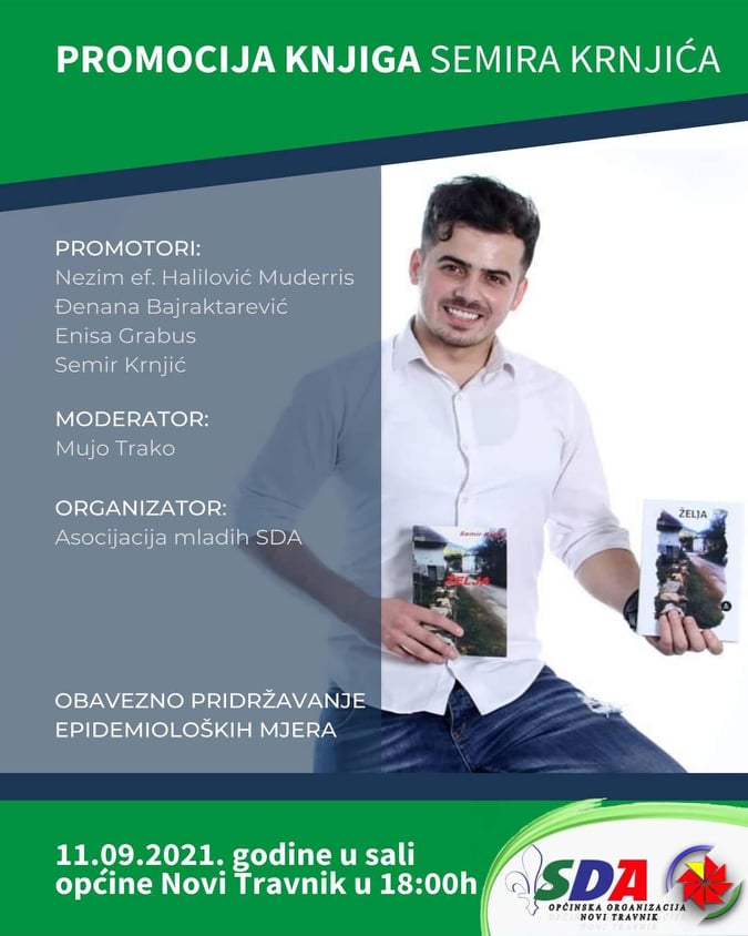 U subotu 11.9.2021. godine u sali općine Novi Travnik sa početkom u 18 sati održat će se promocija knjiga Novotravničanina Semira Krnjića.