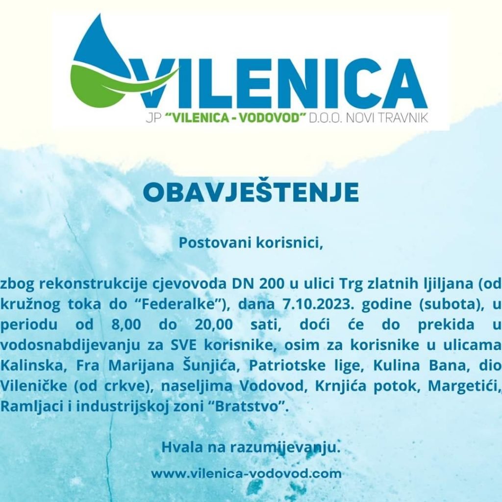 Vilenica Vodovod: Važna obavijest o prekidu vodosnabdijevanja