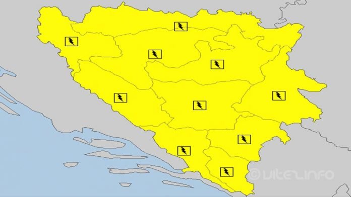 Naime, prema Federalnom hidrometeorološkom zavodu već danas poslijepodne očekuju se pljuskovi i grmljavina u centralnim i istočnim područjima Bosne, kao i na sjeveru i istoku Hercegovine.
